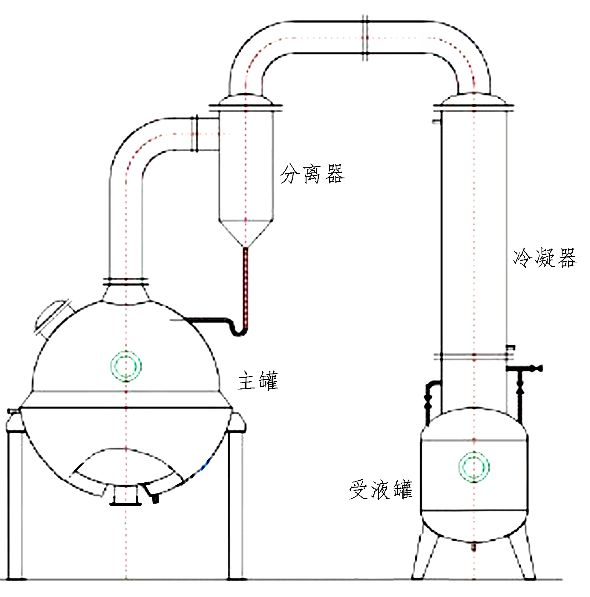 球形濃縮罐主要由濃縮罐主體、冷凝器、氣液分離器、受液桶四個部分組成,可用于制藥、食品、化工等行業(yè)對料液的濃縮、蒸溜及有機(jī)溶